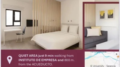 Nuestros apartamentos se encuentran a 400m de la universidad IE y a 500 m del acueducto de Segovia, lo que es igual a 5 min caminando hasta la universidad y 8 minutos caminando al centro de Segovia.
