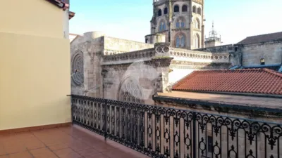 Precioso atico-duplex en el casco vello de la ciudad con vistas a la catedral, amplia terraza. Planta baja- salon-comedor, cocina semi-americana y aseo, planta alta dormitorio abierto , vestidor y baño. Aire acondicionado, calefaccion electrica y ascensor.