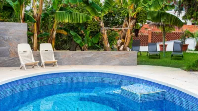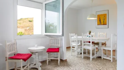 Delfines 13", villa 6 estancias 200 m² en 2 plantas, orientación oeste. Espacioso, con mobiliario funcional y agradable: salón con chimenea, tv y estufa eléctrica. Salida a la terraza. Comedor. 1 dorm. Con 2 camas (90 cm, 190 cm de longitud). Cocina (horno, lavavajillas, x placas de vitrocerámica, microondas, congelador) con pasa-platos. Baño/wc. En planta inferior: salón-dormitorio 20 m² con 2 camas (90 cm, 190 cm de longitud), 1 cama-nido (2 pers. 2 x 90 cm), chimenea, baño/wc y con bañera esquinera. Salida al jardín, a la piscina. 1 dorm. Con 1 cama de matrimonio (150 cm, 200 cm de longitud). 1 dorm. Con 1 cama (150 cm, 190 cm de longitud). 1 dorm. Con 2 camas (90 cm, 190 cm de longitud). Ducha/wc. Terraza 18 m², cubierta terraza 18 m², cubierta. Muebles de terraza, barbacoa, tumbonas (4). Vista parcial al mar y a las montañas. El alojamiento dispone de: lavadora, plancha, trona, cuna hasta 2 años, secador de pelo. Internet (wifi, gratis). Plaza de aparcamiento (3 coches). A tener en cuenta: adecuado para familias. Tv solamente es. El salón dormitorio con sofá-cama y tres camas no tiene puerta.