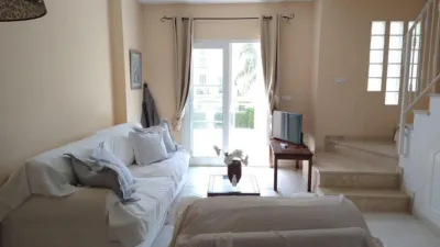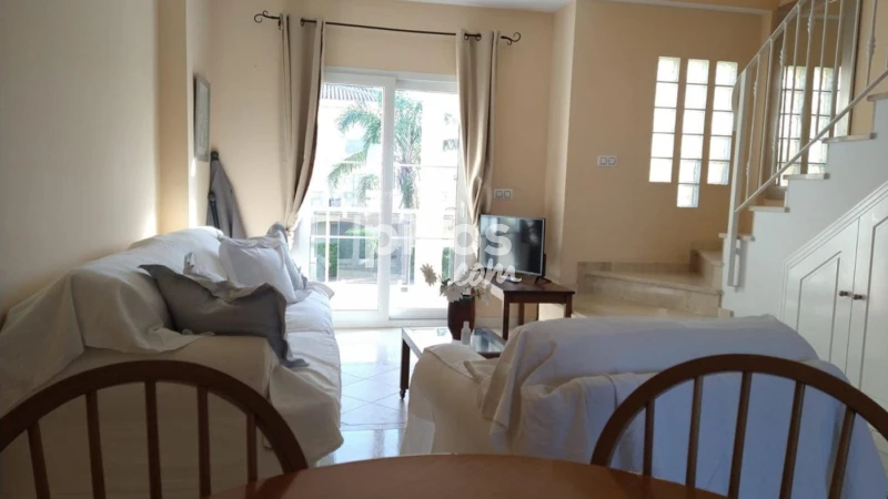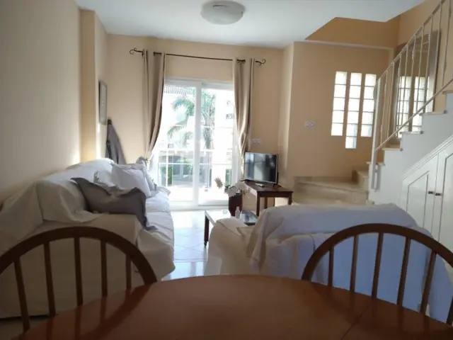 Dispone de armarios empotrados en los dormitorios y uno debajo de la escalera, 3 aires acondicionados, cocina equipada con lavadora, lavavajillas, nevera combi, horno, vitro, cafetera, microondas, hervidor de agua, vajilla completa.
