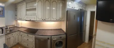 -cocina totalmente equipada con nevera, microondas, horno, lavadora y lavavajillas