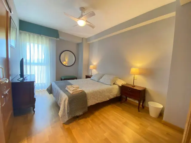 La habitación es luminosa y está perfectamente equipada, con los siguientes complementos: baño privado, 1 cama de 1,35 m con 2 almohadas y cojines, juego de sábanas y edredón, doble mesita de noche con lámpara, modular con cajonera, un espacioso armario, calefacción por gas natural individual y cerramientos de doble cristal con las mejores calidades, tv. Piso compartido con 4 habitaciones (una de ellas con baño privado en suite), en una ubicación privilegiada del madrileño distrito de Moratalaz, uno de los más bellos y tranquilos de la ciudad.