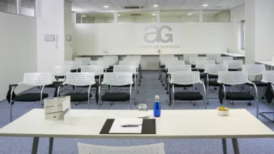 Diseñada para aquellos que buscan una sala de reuniones, entrevistas, cursos de formación, etc de tamaño medio/amplio.Disfrutará de la máxima calidad y eficiencia en cuanto a instalaciones, personal y ubicación. Estratégicamente situada y gozando de las inmejorables instalaciones del prestigioso centro de negocios AG, usted se verá gratamente impresionado por su elección. Teniendo a su disposición todos los servicios necesarios para la realización de sus reuniones, retroproyector, pantalla de proyección, micro, etc.. También será un agradable punto de encuentro para sus eventos,Tenemos a su disposición nuestros servicios de catering, coffe break, pica pica.... No lo dude, si está buscando una sala de reuniones de estas características, ya lo ha encontrado. Visítenos, y sin ningún compromiso le mostraremos nuestras instalaciones.Alquilable por horas, media jornada, jonada completa o mes.