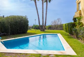 Exclusivo chalet pareado con vistas al mar y al golf en Añoreta Ubicado en la reconocida urbanización Añoreta Golf, este magnífico chalet pareado de 245 m2 útiles combina amplitud, luminosidad y un entorno residencial privilegiado. A tan solo unos metros del campo de golf, la propiedad ofrece un estilo de vida único, rodeado de tranquilidad y exclusividad. La vivienda se distribuye en varias plantas, con espacios diseñados para disfrutar del máximo confort. Cuenta con cocina comedor totalmente equipado así como un amplio lavadero con armarios, amplio salón con chimenea y salida directa a terraza, 3 dormitorios con armarios empotrados y vistas al mar, 2 baños,1 aseo, zonas de estar con acceso directo a terrazas y balcones, además de un acogedor patio privado perfecto para momentos de relax. Dispone de jacuzzi en total funcionamiento. wifi disponible Amueblada con gusto y calidad, la propiedad destaca por sus impresionantes vistas panorámicas al mar Mediterráneo y al campo de golf, creando un ambiente de serenidad y bienestar. Ubicado a pocos metros del campo de golf y con excelentes conexiones a Málaga capital, este hogar se encuentra cerca de colegios internacionales y servicios esenciales. Su tranquila urbanización cuenta con piscina y jardín privado. El precio varía según temporada (gastos de gestión y limpieza no incluidos) Consulte disponibilidad y precio. Para más información llámenos al 952407824 o email a patrick@imoswiss.com We speak English Wir sprechen Deutsch On parle francais