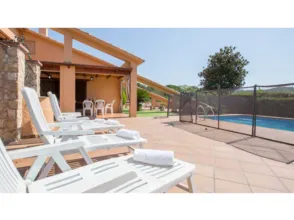 Acogedora y gran casa de 5 habitaciones situada a tan solo 4,5 Km de la bonita y tranquila playa Cala Canyelles y 10 km de Tossa de Mar, uno de los pueblos más encantadores de la Costa Brava. ¡Esta casa es ideal para disfrutar de unas vacaciones en familia en la Costa Brava! Capacidad máxima para 10 personas. Zona exterior con piscina privada (4x8m) y una gran terraza con vistas al mar y a la montaña, barbacoa de obra y plaza de parking para 2 coches. Zona interior distribuida en 2 plantas. El comedor está unido a la cocina en un espacio abierto con cadena musical, tv plasma con satélite y canal francés especial. Cocina equipada con lavavajillas, vitrocerámica, cafetera eléctrica, lavadora y horno. Dispone de 2 habitaciones suites con una cama de matrimonio cada una (150x190cm; 160x200cm) y 3 habitaciones con dos camas individuales (90x190cm). También tiene 3 baños completos todos con bañera hidromasaje. Mascotas no aceptadas. No se admiten reservas de jóvenes menores de 35 años. Cala Canyelles es una bonita cala de la Costa Brava que destaca por su agua clara y cristalina. Se pueden alquilar sombrillas y tumbonas, así como practicar actividades como pedal, parasailing, esquí acuático y piragüismo. También se puede degustar la típica comida mediterránea como pescado y paellas en los restaurantes de la playa. Tossa de Mar es un encantador pueblo medieval amurallado con un hermoso castillo, excelentes restaurantes y bonitas playas. #ref:ANGELES - ANGELES - Booking.me
