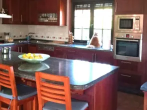 ¡No pierdas la oportunidad de vivir en esta espectacular casa independiente de dos plantas más sótano en una finca de 1.480 m2! En la planta baja encontrarás un amplio salón, cocina totalmente equipada, un dormitorio doble y dos baños completos con bañera. En la planta alta, tres dormitorios dobles, un baño completo con bañera, una sala con otra habitación anexa, y trastero. Todos los dormitorios con armarios. En el sótano, una cocina completa con una espectacular lareira de piedra, una zona de garaje para cuatro coches, un baño completo con ducha, bodega con dos congeladores, unas zonas para caldera y deposito de gasoil y una cámara frigorífica. La calefacción y agua caliente son por gasoil, carpintería interior de madera con suelos de parquet de elondo y cerámica en baños y cocina, carpintería exterior de aluminio con vidrio tipo climalit con apertura oscilo batiente. El jardín cuenta con sistema de riego automático, la parcela se encuentra totalmente urbanizada, convirtiéndola en un lugar perfecto para relajarte y disfrutar de la naturaleza. Se admiten mascotas de tamaño pequeño. REQUISITOS: Un mes de fianza, mes en curso y seguro de impago de alquiler. ¡No dejes pasar esta oportunidad y contáctanos para visitarla!