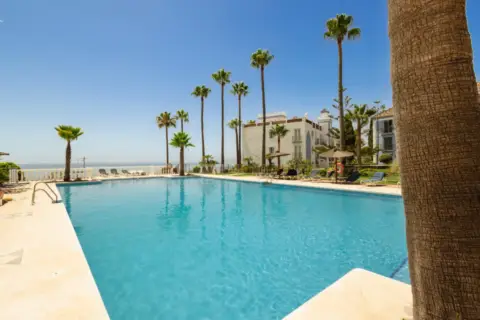 Con bonitas vistas al mar Mediterráneo, el apartamento se encuentra en Estepona. La propiedad de 123 m² consta de una sala de estar, una cocina bien equipada, 3 dormitorios y 2 baños, por lo que puede acomodar a 6 personas. Los servicios adicionales incluyen Wi-Fi de alta velocidad (apto para videollamadas), una smart TV con servicios de streaming, aire acondicionado, un ventilador, así como una lavadora. También hay una cuna disponible. Esta propiedad ofrece una zona exterior privada con terraza cubierta y balcón. Además, hay un espacio exterior compartido con piscina vallada, jardín, piscina infantil y ducha exterior. La propiedad está ubicada en la playa y hay una pista de tenis a 15 minutos a pie. hay 2 plazas de parking disponibles en la propiedad.