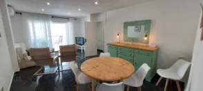 Amplio y luminoso piso en Santa Pola con una superficie construida de 88 m y 70 m útiles. Dispone de dos dormitorios, dos baños completos, cocina equipada y una acogedora zona de estar con acceso a terraza y balcón. Totalmente amueblado, cuenta con calefacción central y aire acondicionado, ofreciendo confort durante todo el año. Su orientación sur-oeste garantiza gran luminosidad y ventilación natural. Incluye plaza de garaje y trastero. Edificio exterior sin ascensor, ubicado en zona tranquila y cercana a servicios, comercios y la playa. Ideal para quienes buscan un hogar moderno, funcional y bien comunicado en la Costa Blanca.