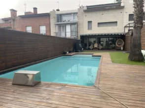 Torre de tres plantas con ascensor y piscina. Esta torre tiene disponible las dos plantas superiores donde encontrarás las habitaciones, el comedor, salón, cocina y baños principales. En la planta superior hay habitaciones más pequeñas con un baño equipado y una sala central con mesa, también encontrarás un lavadero y una terraza con barbacoa. En el Jardín encontrarás un parque infantil y una piscina de un cuarto olímpico y una zona de barbacoa y baño. También hay un garaje cubierto con capacidad para dos coches. Gastos incluidos de agua luz y gas en el precio. Zona muy tranquila, cerca de la salida del pueblo y con rápido acceso a las c-17 y otras carreteras principales. Se encuentra a media hora de Barcelona. Supermercados y colegios cercanos.