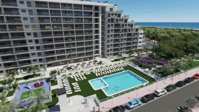 El complejo ofrece piscina para adultos y niños, jardines con juegos, salón social interior y exterior, zonas peatonales y parking en sótano con preinstalación para vehículos eléctricos. Todo lo necesario para un estilo de vida cómodo y atractivo, tanto para familias como para quienes buscan una segunda residencia junto al mar.