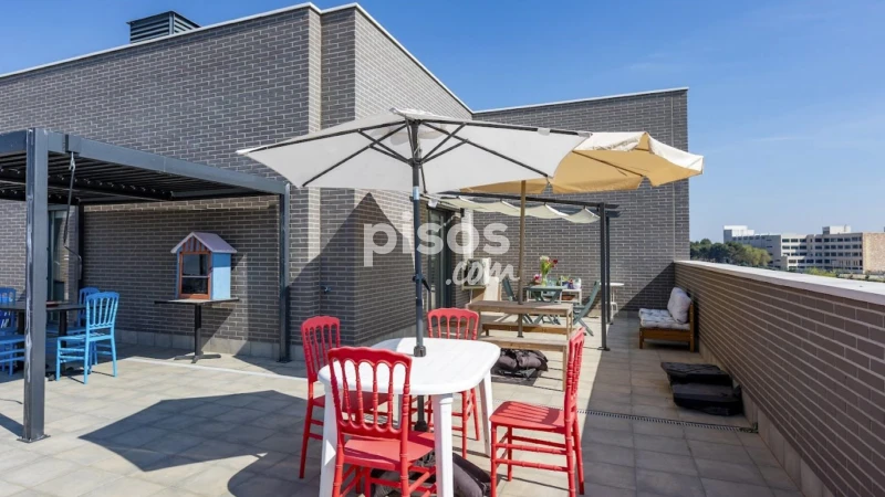 Espectacular ático en venta zona arca reales con una terraza de 115m². Vivienda casi a estrenar (construcción julio 2025) (se vende por traslado). Tres amplios dormitorios, el principal con baño amueblado y plato de ducha, los dos dormitorios más pequeños son dobles. Baño amueblado con bañera. Tres armarios empotrados de pared a pared vestidos. Cocina equipada con electrodomésticos y salida directa a la terraza. Amplio salón con salida directa a la terraza. Terraza de 115m² con excelentes vistas con varias orientaciones (a la vivienda le corresponde el uso y disfrute de la terraza ya que es un elemento común de uso privativo), vivienda muy luminosa y soleada. Aire acondicionado en la vivienda, calefacción por suelo radiante, primeras calidades, plaza de garaje y trastero grande. Urbanización privada. Con pádel, zona infantil, piscina, zona gourmet y gimnasio. Buen acceso a la carretera. Mejor visitar.***las superficies indicadas en este anuncio tienen carácter descriptivo y son aproximadas***
