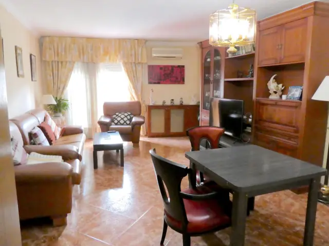1º piso: 4 habitaciones dobles exteriores, baño completo (ducha, váter, bidet y lavabo), salón-comedor de 28m con salida a balcón grande de 7m y cocina con armarios de haya bien conservada y con salida a terraza de 40m. En el pasillo hay una despensa.