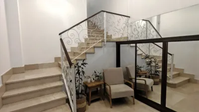 Elegante portal de entrada, porche y un gran espacio multifuncional actualmente destinado a almacén y garaje con capacidad para 3 o 4 vehículos, un valor excepcional en el centro de la ciudad.