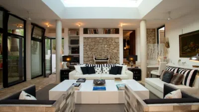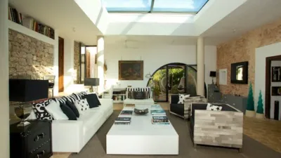 Oi Realtor presenta en exclusiva una espectacular Villa rural muy cerca de Santa Gertrudis en Ibiza, es una pedanía del centro de la isla de Ibiza, parte del municipio de Santa Eulalia del Río. Se trata de un pueblo pequeño rodeado de casitas blancas formado por un cruce de calles peatonales junto a la iglesia, repleto de diferentes bares y restaurantes. Aquí se encuentran los bares con más solera de Ibiza y donde comer muy bien, sus entornos mediterráneos enloquece a mucho a extranjeros, se respira un aire bohemio y único en localidad. En la época de verano el pueblo no se da abasto por el alto índice de turismo recorriendo las ricas playas y veraneando de forma idílica. Esta hermosa villa se abre en una inmensa parcela de 12.000 m², superficie construida de 420 m² con solicitud de Licencia Turística presentada. Ofrece los mejores espacios abiertos, cada rincón fue diseñado para recibir mucha luz natural durante casi todo el año, es una propiedad muy cálida y acogedora que invita a la tranquilidad del cuerpo y el alma, entornos perfectos como terrazas, áreas chill out, zonas de juegos para los más pequeños de la casa, piscina de gran tamaño para no querer salir durante el día de ella, jardines con inmejorables vistas, árboles centenarios, un paraíso natural que envuelve en un remanso de paz y relax. La casa dispone de un amplio salón con diferentes ambientes de estilo mediterráneo, todos exteriores y con acceso a la terraza, cocina office de gran tamaño equipada con electrodomésticos de alta gama, su zona de descanso la conforman siete (7) dormitorios dobles muy elegantes con sus respectivos baños en suite con vistas al mar, a la piscina y el jardín, sala de meditación, que más se le puede pedir a esta villa!!!! Acabados perfectos y de gran calidad.