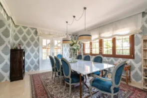 Engel & Völkers presenta una joya escondida en Villanueva de la Cañada: una majestuosa mansión de 433 metros cuadrados que promete un estilo de vida de lujo. Con 7 habitaciones y 5 baños, esta propiedad, construida en 1968, ofrece un amplio espacio para la vida familiar y el entretenimiento. Al entrar, será recibido por un ambiente cálido y acogedor, realzado por los suelos de Parquet del salón, distribuido en dos ambientes , una chimenea preciosa , que añade un toque de elegancia clásica. Decorada con lujosos muebles de estilo Francés, que tanta elegancia aporta al enfoque visual de esta magnífica y muy cuidada residencia. La distribución es abierta y las vistas al verde entorno crean un refugio de tranquilidad y belleza. Tres zonas íntimas y diferenciadas albergan la zona de descanso. Situadas en la entreplanta y la primera planta. Cada una de ellas con dos dormitorios compartiendo baño, y la tercera, master suite, con vestidor, despacho y terraza privada. El área de servicio, en la planta baja, cuenta con una preciosa cocina con salida al jardín, cuarto de limpieza y una habitación para el servicio. Entre sus características exclusivas destacan una amplia terraza y un exuberante jardín, ideales para disfrutar del aire libre. La propiedad también cuenta con una piscina privada con zona de barbacoa y un sistema de seguridad 24 horas para su tranquilidad. Esta residencia es una oportunidad única para renovar y personalizar un hogar que combina el encanto del pasado con el potencial de un futuro brillante. No deje pasar la oportunidad de poseer esta magnífica propiedad. Descubra un estilo de vida inigualable en Villanueva de la Cañada, un enclave exclusivo en la Comunidad de Madrid. Esta prestigiosa ubicación es ideal para aquellos que buscan combinar el lujo con la tranquilidad, ofreciendo un entorno perfecto para familias y profesionales que valoran la privacidad y la calidad de vida. La zona cuenta con una infraestructura excepcional, incluyendo colegios internacionales de renombre, centros médicos de alta calidad y una variedad de tiendas boutique. Además, Villanueva de la Cañada está estratégicamente conectada: a solo 35 minutos en coche del centro de Madrid, y con fácil acceso a la red de transporte público que garantiza un desplazamiento cómodo por toda la región. Para el ocio, los residentes pueden disfrutar de campos de golf de clase mundial, centros ecuestres y rutas de senderismo que serpentean por el paisaje natural. Las opciones gastronómicas son abundantes, con restaurantes que ofrecen desde cocina tradicional española hasta propuestas internacionales. La proximidad a la Sierra de Guadarrama ofrece un refugio natural para los amantes de la naturaleza, mientras que el Parque Natural de la Cuenca Alta del Manzanares está a un corto trayecto, brindando un escape sereno para actividades al aire libre. En Villanueva de la Cañada, encontrará un equilibrio perfecto entre sofisticación y serenidad. Este lugar no solo promete una residencia de lujo, sino una experiencia de vida enriquecedora en uno de los rincones más codiciados de Madrid.