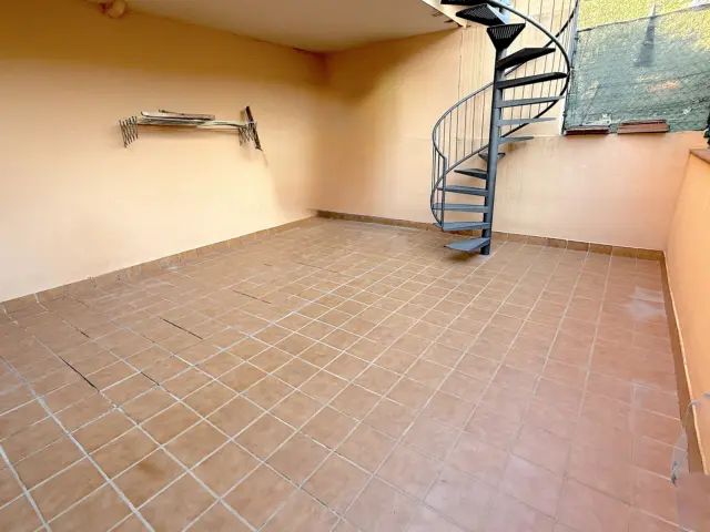 Planta Baja: garaje de 15m, una amplia cocina exterior en buen estado de conservación, un salón-comedor grande de 24m con salida a una terraza de 19m que comunica con otra terraza de 50m; y un aseo de 2 piezas (baño y lavabo). Se ha aprovechado el hueco de la escalera para hacer un espacio de almacenamiento.