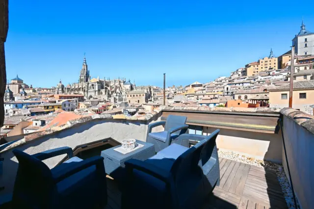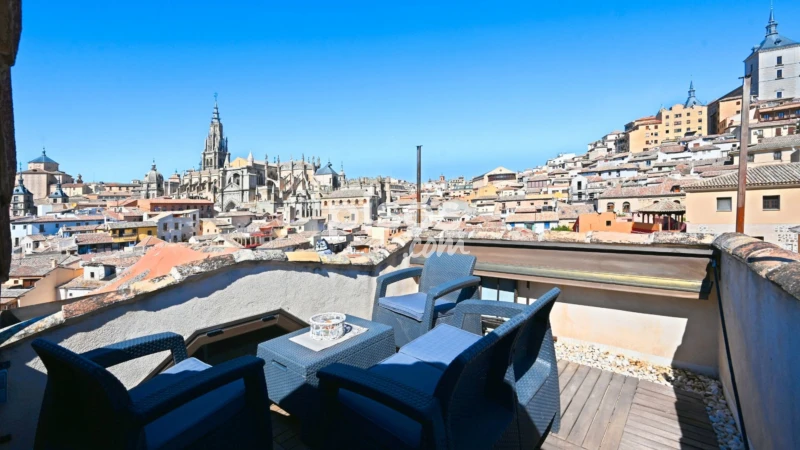 Este exclusivo dúplex en Toledo ofrece el privilegio de contemplar, desde su amplia terraza, la majestuosidad de la Catedral y del Alcázar, así como, la serenidad de la zona del Valle. Un escenario único que convierte cada amanecer y cada atardecer en un espectáculo privado.