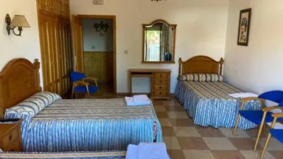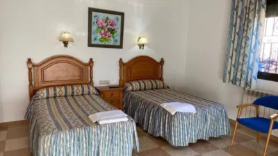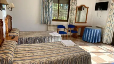 Hostal en Albacete de 2 estrellas, construido en 2000, consta de 22 habitaciones repartidas en 3 plantas de 300 m2 cada una, todas con televisión, baño completo, armario, calefacción y aire acondicionado. De las 22 habitaciones, 15 de ellas tienen una amplia terraza cada una con excelentes vistas a las montañas y naturaleza. Restaurante. A parte tiene una vivienda de dos pisos de 300 m2, cochera de 150 m2, lavandería y curto de deposito de gasoil y cuarto de deposito el agua. El hostal tiene un amplio jardín y un patio común de 200 m2, con vistas a la montaña. Adaptado para sillas de ruedas.