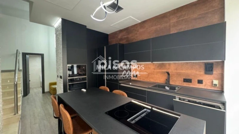 Moderna cocina americana con amplia barra abierta al salón, ideal para reuniones sociales