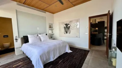 El apartamento ofrece una generosa superficie habitable de 125 m, lo que proporciona un amplio espacio para una vida cotidiana cómoda. Su distribución está cuidadosamente planificada, lo que lo hace adecuado para familias, parejas o como una elegante segunda residencia en el tranquilo pueblo de San José. El interior luminoso y el diseño espacioso contribuyen a crear un ambiente relajado y acogedor en toda la propiedad. Una terraza de 60 m amplía la vivienda al exterior, creando el lugar perfecto para relajarse bajo el sol mediterráneo. Este espacio es ideal para comer al aire libre, descansar o simplemente disfrutar del ambiente del pueblo. La terraza añade un valor significativo a la vivienda y realza la sensación de vida abierta y moderna. En el interior del apartamento hay tres dormitorios bien proporcionados y tres modernos cuartos de baño, que ofrecen comodidad y privacidad tanto a los residentes como a los invitados. La propiedad también incluye un garaje privado, que proporciona aparcamiento seguro y opciones de almacenamiento adicionales. Estas características hacen que la vivienda sea práctica y cómoda para vivir durante todo el año. A su atractivo se suma el acceso a una piscina de agua salada, que le da a la residencia un toque moderno y una refrescante característica al aire libre. La ubicación es muy conveniente, ya que se encuentra a solo 15 minutos del aeropuerto, a 10 minutos de la playa más cercana y a 5 minutos de la ciudad más cercana. Esto garantiza un fácil acceso a los servicios esenciales, las atracciones costeras y los destinos clave de la isla.