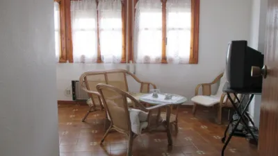 Carpintería de madera, suelos de gres, pintura gotelé, calefacción y agua caliente eléctrico.