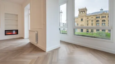 Se trata de una vivienda muy luminosa, al tener orientación sur y tres amplios huecos (un gran mirador y dos balcones) con vistas al río y al teatro Victoria Eugenia.
