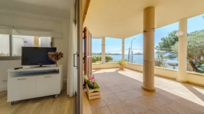 Preciosa planta baja en una pequeña comunidad de 4 vecinos. Recién reformada en primera línea de Alcanada. Consta de 4 dormitorios, 3 baños, salón comedor con chimenea, cocina, una gran terraza con vistas espectaculares a la Bahía de Alcudia y la isla de Alcanada, lavadero, trastero y una plaza de parking. Hay un jardín de 1000m2 que corresponde a la comunidad. La propiedad se encuentra a tan solo 1 km del Puerto de Alcudia y cerca del prestigioso Campo de Golf de Alcanada.