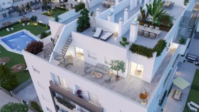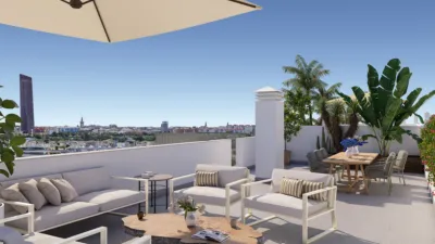 Viviendas nuevas cerca de Sevilla, con espacios exteriores y diseño actual.