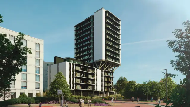 Las 90 viviendas cuentan con 2, 3 o 4 dormitorios, distribuidas en planta baja más 4 alturas y planta baja más 14 alturas, todas con acabados de alta calidad. Este conjunto residencial incluye una amplia zona Chill Out en la azotea de la planta 15, con magníficas vistas, un gimnasio exterior en la planta 5 para ejercitarse al aire libre y un taller de bicicletas en el garaje.