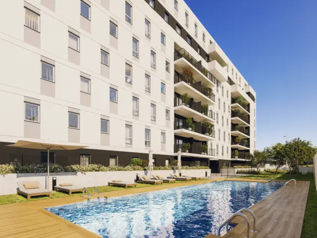 Todas las estancias de las viviendas están pensadas para que percibas su confort rodeados de primeras calidades. Todas las viviendas cuentan con una plaza de garaje. Sus zonas comunes cuentan con piscina, zona de juego de niños, sala comunitaria, gimnasio, aparcamiento para bicicletas y zonas ajardinadas.