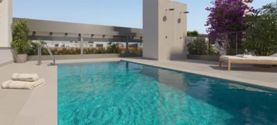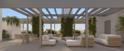 Edificio residencial compuesto por 30 viviendas 2 dormitorios de diferentes formatos y 6 lofts de doble altura situados en planta baja. La mayoría de las viviendas son pasantes para favorecer la ventilación natural. Sus estancias son amplias y tienen una distribución muy funcional donde el salón y cocina tienen conexión a un balcón muy agradable. Así mismo, en la primera planta disponen de 4 viviendas exclusivas con un patio con encanto. Los dormitorios son amplios con una gran superficie de armarios. Se entregan con plaza de garaje y trastero. Su fachada será ventilada al exterior y de tipo de SATE al interior. Lleva instalado suelo radiante y refrescante por sistema centralizado de Aerotermia. La carpintería de aluminio es de rotura de puente térmico con persianas motorizadas de lamas de aluminio en el salón. Las cocinas están completamente amuebladas y equipadas con todos los electrodomésticos.ticos.