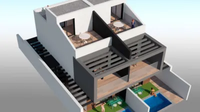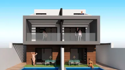 Modernos Chalets Pareados con Piscina Privada Cerca del Mar en Santiago de la Ribera Nueva Promoción Exclusiva a Solo 1 km de la Playa Descubre esta promoción limitada de solo dos chalets pareados ubicados en Santiago de la Ribera, un encantador pueblo costero en la costa murciana, conocido por su estilo de vida relajado, playas limpias y excelente clima durante todo el año. Estas viviendas de obra nueva se encuentran a tan solo 1 km de las orillas del Mar Menor, ofreciendo la combinación perfecta de privacidad, confort y cercanía a servicios esenciales y opciones de ocio. Diseño Contemporáneo con Distribución Funcional Cada chalet está cuidadosamente distribuido en dos plantas más un solárium en la azotea, ofreciendo un amplio espacio para una vida moderna. Las propiedades incluyen: 3 amplios dormitorios, uno de ellos en planta baja 3 baños completamente equipados, dos de ellos en suite Jardín privado y piscina Terraza en la primera planta y solárium en la azotea, ideal para tomar el sol o recibir invitados Aparcamiento privado dentro de la parcela, con acceso por la calle trasera y entrada peatonal independiente por el frente Esta distribución garantiza privacidad, comodidad y el máximo aprovechamiento del espacio exterior. Acabados y Equipamiento de Alta Calidad Construidas con atención al detalle y altos estándares modernos, las viviendas incluyen: Carpintería exterior de aluminio con rotura de puente térmico y ventanas con doble acristalamiento Instalación completa de aire acondicionado por conductos Piscina privada incluida con cada vivienda Plaza de aparcamiento segura dentro de la parcela Estas casas están diseñadas para ofrecer confort durante todo el año, ya sea como residencia principal, segunda vivienda o inversión para alquiler vacacional. Ubicación Privilegiada en la Costa Cálida Santiago de la Ribera ofrece un vibrante estilo de vida mediterráneo con todo al alcance de la mano: Playa (Mar Menor) – 1 km Centro Comercial La Ribera – 2 km Roda Golf – 5 km Aeropuerto de San Javier – 6 km Puerto Deportivo de Lo Pagán – 4 km Centro Comercial Dos Mares – 3 km Excelente conexión por carretera con Murcia (40 km) y Cartagena (30 km) Con su rica cultura local, mercados semanales, paseos marítimos y opciones de deportes acuáticos, Santiago de la Ribera es el lugar ideal para disfrutar lo mejor de la Costa Cálida. Haz Realidad tu Sueño de Vivir Cerca del Mar No pierdas esta oportunidad única de adquirir un chalet moderno en una de las zonas más deseadas de la costa murciana.