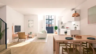 Estos adosados en venta en Terrassa se ubican en una antigua nave industrial rehabilitada, lo que les confiere un estilo industrial único. Conservan elementos originales como las cerchas vistas, que se integran con un diseño contemporáneo y grandes ventanales que llenan de luz natural cada estancia. Todas las viviendas disponen de certificación energética A, garantizando la máxima eficiencia y ahorro. Las viviendas, se han dotado de excelentes distribuciones, primando la luminosidad de las estancias y con un diseño de cariz industrial donde se aprovecha parte de la estructura original y se complementa con elementos actuales que potencian los espacios y el confort.