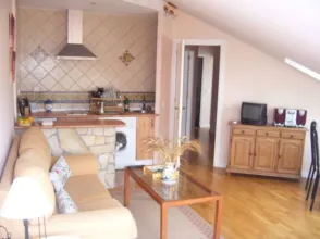 Apartamento en planta baja de 65 m2, que consta de un salón comedor con chimenea, cocina, baño, dos dormitorios y una terraza. Amueblado.