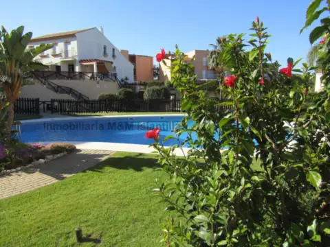 Magnifica vivienda adosada, distribuida en dos plantas, muy luminosa y en perfecto estado de conservación, lista para entrar. En una urbanización privada con piscina, pistas de pádel, parque infantil y chiringuito. Dispone de dos habitaciones con armarios empotrados, balcón en la habitación principal, dos baños, un aseo, cocina independiente equipada con electrodomésticos, incluido lavavajillas y lavadero cerrado, salón comedor con fantástica terraza con césped artificial, barbacoa y excelentes vistas. Excelentes calidades, mosquiteras en todas las ventanas, aire acondicionado en las habitaciones y ventiladores de techo (de los que se les recoge las aspas), carpintería exterior de chimalli y carpintería interior de madera. Plaza de garaje en sótano.