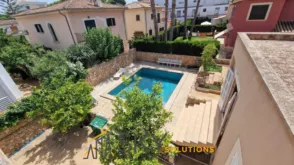 Sky Solutions vende exclusivo Chalet independiente con piscina de 25 m2, a tan solo 100 metros de la playa, en Playa de palma. Disfruta de un estilo de vida exclusivo en esta espaciosa vivienda con una impresionante parcela de 771 M2, una refrescante piscina y un amplio garaje para tres coches. Todo lo que siempre has soñado, ¡ahora al alcance de tus manos! La vivienda se distribuye en: - Amplio salón-comedor de 50 m2 con salida a la terraza y con una cálida chimenea - Cocina independiente - 4 amplios dormitorios con armarios empotrados - 1 dormitorio exterior - 3 baños completos - 1 Baño completo en el exterior - Trastero de 30m2 convertible en otro uso - Garaje para 3 coches - Piscina Adicionalmente, un acogedor salón en el porche acristalado te invita a disfrutar de la compañía de tus amigos mientras contemplas las vistas a la piscina y al jardín, creando una experiencia única para tus sentidos. La cocina office independiente, completamente amueblada y con una práctica despensa, es el espacio ideal para los amantes de la gastronomía, y su salida al exterior te permitirá disfrutar de deliciosas comidas al aire libre rodeado de un entorno natural incomparable. Además, este fabuloso chalet cuenta con una lavandería exterior y un amplio trastero de 20M2, asegurando que cada rincón esté cuidado y organizado a la perfección. Los porches, terrazas, balcón y un encantador jardín con árboles frutales te ofrecen múltiples áreas para relajarte y disfrutar del buen clima, mientras que la terraza solárium se convierte en un rincón íntimo donde desconectar y recargar energías. En cuanto a comodidades, esta propiedad destaca por su doble acristalamiento, aire acondicionado en las habitaciones y calefacción por gasóil, lo que garantiza el máximo confort durante todo el año. Además, un sistema de filtro de ósmosis y un pozo para riego te permiten mantener un jardín exuberante y lleno de vida. Con una última reforma realizada hace 10 años, la prop