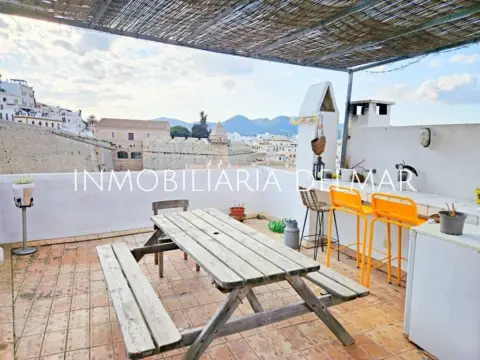 Este impresionante "Duplex Delicia", en venta con Prestige Properties, esta situado en barrio histórico de La Marina de Ibiza y ofrecen preciosas vistas desde la azotea, tanto al puerto de Ibiza como a Dalt Vila. La propiedad están bellamente decoradas y mantenida a la perfección. El Dúplex se encuentra complemente reformado con materiales de muy alta calidad. ACCESO, ENTRADA Y PARKING El acceso a las propiedades es por una escalera totalmente privada para dos apartamentos. La entrada es desde la famosa Calle Mayor. En la zona hay varios aparcamientos públicos a los que se puede acceder en coche desde distintos puntos de la ciudad. Para los residentes existe la posibilidad de solicitar un permiso de estacionamiento con tarifas reducidas. Pregúntenos más al respecto. DISTRIBUCIÓN El dúplex, cuenta con una entrada espectacular que nos lleva a las dos habitaciones, las dos en suite, la primera a la derecha que cuenta con muchísima luz. La segunda a la izquierda, muy amplia y como toda la propiedad, muy bien decorada y reformada. Al subir las escaleras, muy amplias, nos encontramos la zona de estar que se conecta con una terraza a mismo nivel. Aquí, también se encuentra la cocina, complemente equipada y reformada. Y, desde aquí, se accede a una terraza azotea con vistas maravillosas al puerto de Ibiza y la catedral de Dalt Vila, un oasis en la ciudad de Ibiza. Esta azotea se encuentra bien decorada con varias zonas de relax con muchas luces para disfrutar de la noche, así como una pequeña piscina privada. El lugar perfecto para disfrutar con amigos. EXTERIORES Cuenta con 2 balcones, uno hacia clle de la virgen y otro hacia calle mayor. Además, la ya mencionada terraza a mismo nivel que el salón y la azotea, que cuenta con todo tipo de comodidades y una piscina espectacular con vistas al puerto y a Dalt Vila. EQUIPAMIENTO La propiedad está equipada con agua y luz de red así como, aire acondicionado frío/calor e internet. La puerta principal tiene cierre eléctrico y posibilidad de contraseña para acceder sin llaves. La vivienda se vende con mobiliario básico. UBICACIÓN, VISTAS Y ORIENTACIÓN La vivienda se ubica en el bario histórico de La Marina de Ibiza. Cuenta con preciosas vistas al puerto y a Dalt Vila. No deje pasar esta oportunidad y concierte una cita para verlo. También ofrecemos visitas virtuales bajo petición. Póngase en contacto con nosotros hoy mismo para solicitar una visita o más información por teléfono: + 34 por correo electrónico: o rellenando el siguiente formulario de contacto. Los datos expuestos sobre esta propiedad son informativos y orientativos, obtenidos de las fuentes disponibles para la agencia en el momento de su registro. Sin embargo, no se garantiza su exactitud y se recomienda verificar toda la información antes de cualquier compromiso.