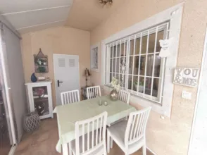 B-3461 Descubre este versátil y bellamente cuidado bungaló dúplex situado en la codiciada comunidad residencial de Toretta 3 en Torrevieja. La propiedad ofrece una combinación perfecta de confort, espacio y luz natural, realzada por su orientación al sur y una terraza de cristal cerrada que se puede disfrutar durante todo el año. Posibilidad de unirse a una piscina comunitaria. El bungalow consta de cuatro dormitorios, dos en la planta baja y dos en la planta superior, junto con dos baños, lo que proporciona un espacio generoso para vivir en familia o alojar invitados. La acogedora terraza acristalada crea un espacio ideal para relajarse o recibir invitados, permitiéndote disfrutar del sol mientras te mantienes protegido de los elementos. Tanto si buscas una residencia permanente como un retiro vacacional, esta propiedad es una excelente oportunidad para adoptar un estilo de vida mediterráneo relajado. Situado en la tranquila y acogedora comunidad de Toretta 3, el bungalow se beneficia de un entorno tranquilo mientras permanece cerca de servicios locales, playas, parques y centros comerciales. La ubicación ofrece el equilibrio perfecto entre tranquilidad y comodidad, con fácil acceso a todo lo que Torrevieja tiene para ofrecer.