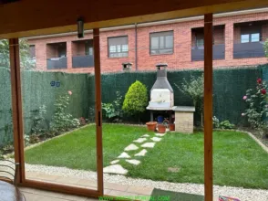 En Olite, estupenda vivienda adosada. Distribuida en dos plantas, la planta baja es la zona de dia con salon, cocina , aseo, tiene un porche de madera cerrado con puertas correderas y acceso al jardín al que se accede desde la cocina y el salon. Garaje con puerta automática y descalcificador y armarios para almacenaje La primera planta consta de baño completo con bañera y tres habitaciones con balcón y armarios empotrados, una de ellas con baño incorporado con plato de ducha y vestidor Tiene todas las ventanas con mosquiteras Llama sin compromiso