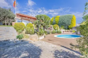 Des de VIVES HOMES queremos presentarle esta espectacular casa en la mejor zona de Sant Vicenç de Montalt. Esta vivienda se caracteriza por diferentes particularidades. En primer lugar la paz y la tranquilidad que se respira es difícil de encontrar en otra vivienda ya que la zona es inmejorable. Además gracias a su espacio exterior dividido en diferentes rincones con encanto podemos disfrutar de cualquier velada junto a familiares y amigos. La parcela de 1.081m2 alberga un amplio jardín completamente llano, con vistas despejadas y al mar, donde ubicamos una piscina recién reformada junto a un precioso porche con techos en bóveda ideal para esas cenas de verano que tanto nos gustan y otro porche de obra con acceso desde la zona de día. Además, en el exterior, también encontramos una zona de barbacoa junto a un aseo de cortesía. Accedemos a la vivienda a través de una rampa que nos da acceso a un espacio exterior para aparcar hasta 3 vehículos junto a un garaje interior para dos coches más. Hablemos de su interior… Mediante la puerta de acceso principal descubrimos un amplio hall distribuidor con armarios empotrados, salón/comedor a doble altura con chimenea funcional dando paso una espaciosa cocina completamente equipada. Ambas estancias tienen acceso directo al jardín. Esta misma planta dispone de una suite con baño completo con ducha, una habitación tipo despacho o biblioteca, zona de lavadero y otro baño completo. En la planta superior encontramos la zona de noche formada por la master suite principal con baño y vestidor y salida a una espectacular terraza con vistas al mar, dos habitaciones dobles, una de ellas también con su terraza particular y otro baño completo con bañera. Esta vivienda cuenta con numerosos detalles y extras así como; armarios empotrados en diferentes estancias, mosquiteras, aire acondicionado en la master suite, calefacción mediante radiadores, suelos de parque en la planta superior, césped natural en el jardín… Además la urbanización cuenta con zona deportiva formada por dos pistas de pádel, una pista de tenis y otra de frontón. ¡Si desea realizar una visita a la casa de sus sueños, no dude en llamar a VIVES HOMES!